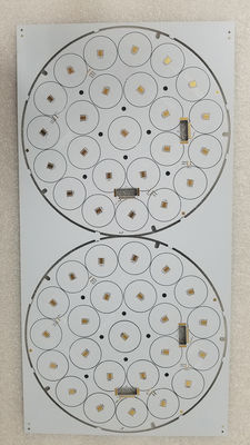 Montaje de LED: los PCB de aluminio LED están diseñados con patrones específicos de trazas de cobre para facilitar el montaje de LED directamente en la superficie de la placa.Los chips LED se soldan típicamente con adhesivos térmicos a las almohadillas de cobre en el PCB.